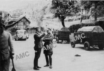 Soldats allemands sur la route de la corniche de Trouville (Collection H.M. 05/2009) 2 sous officiers et un officier de la Polizei