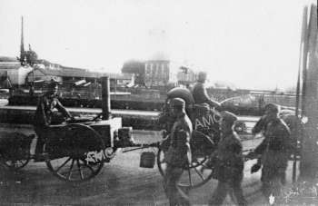 Les premiers camions allemands sur le quai de Trouville *