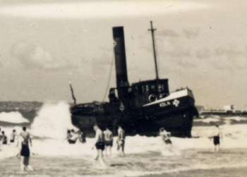 Petit remorqueur allemand échoué sur la plage et dans la port (Collection Laville) *