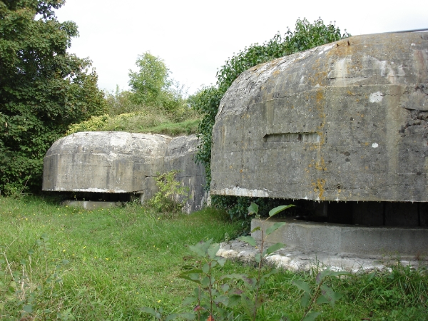 C’était en fait le centre nerveux de la batterie : quelque soit sa puissance de feu, elle ne pouvait en effet être opérationnelle sans moyens d’observation, de calculs de corrections et de directives de tir. L’officier de tir d’une batterie est en fait celui sur lequel repose la responsabilité réelle de l’efficacité de l’unité. Contrairement à des idées parfois reçues et bien ancrées, ses ordres sont transmis directement aux pièces sans avoir à transiter par le P.C. De la rapidité de cette exécution -tirant là sur des cibles mouvantes, de l’observation des impacts des coups, des calculs des corrections à apporter, de leur transmission, dépendent les chances de coups au but... Construit fin 1941, avec 23 mètres de façade sur mer, une visibilité totale sur 180° -la végétation environnante avait été supprimée, ses trois visières d ‘observation sous casquettes de béton, ce sera le premier ouvrage conséquent à être implanté sur le site. Non normalisé, sans doute exemplaire unique, il ne figure pas dans le Regelbau. Son importance linéaire peut surprendre : les PDT de la côte normande (Vasouy, Longues,...), pour un nombre de pièces sensiblement identique, ont une emprise plus réduite. Il était, en fait, conçu, à l’origine, pour la direction de tir des batteries du groupe, efficacité oblige : Houlgate, Bénerville, Villerville et peut-être plus tard Hennequeville. Mais, en 1943, chacune de ces batteries sera finalement dotée de son propre PDT. Peut-être à cause des difficultés de transmission des ordres de tir (lignes téléphoniques endommagées par les bombardements ou les sabotages,...), à moins que la concentration sur un seul poste de l’activité des batteries du groupe se soit avérée être une erreur de conception, fatale en cas de destructions. Le 9 mai 1944, lors de l’opération “RAMROD 897”, menée par des escadrilles de bombardement de la 9ème US AIR FORCE, une bombe de 500 livres détruisit la tourelle orientale du poste. Le compte-rendu allemand ne fit état que de trois morts et douze blessés. Sur le plan pratique, cette destruction ne remettait pas en cause le fonctionnement du PDT de Bénerville puisque son activité était désormais réduite à cette seule batterie. Equipé de matériel de télémétrie, intérieurement recouvert en lambris, disposant de l’eau courante et de l’électricité, relié par téléphone (et peut-être par radio), pourvu de trois accès (dont deux sur tranchée, actuellement condamnées) et de deux sorties de secours, ne disposant pas d’armement collectif, ses six salles étaient isolables, ainsi que les trois caves d’observation (elles, par portes blindées puisque donnant sur l’extérieur), le poste était en état de veille permanente. Cet ouvrage a été squatté et, comme tous les autres, délesté de tous ses aménagements et structures métalliques. C’est le premier ouvrage qui a été réouvert au public, en 1994. Il est vraisemblable que l’abri souterrain, ouvrage de première génération, situé à quelques dizaines de mètres en arrière du PDT et composé de plusieurs pièces ait été utilisé comme casernement pour le personnel du poste. Sa construction est antérieure au 25 mars 1942. Cet ouvrage est le seul sur le site à être équipé de WC avec fosse septique (encore en état de fonctionnement). Ce qui tendrait à prouver qu’il hébergeait des gradés, puisque, à l’exception de l’ouvrage souterrain, aucun des abris pour groupes de combat n’était équipé de telle sorte. Un groupe électrogène permettait d’assurer la veille 24/24h, en cas de panne d’alimentation de secteur. A demi-enterré sous des m3 de détritus après avoir été squatté, il ne peut être dégagé qu’à l’aide d’un engin de chantier. Ouvrage non visitable.