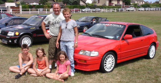 Philippe, guide des AMC, avec sa famille présente son auto de collection